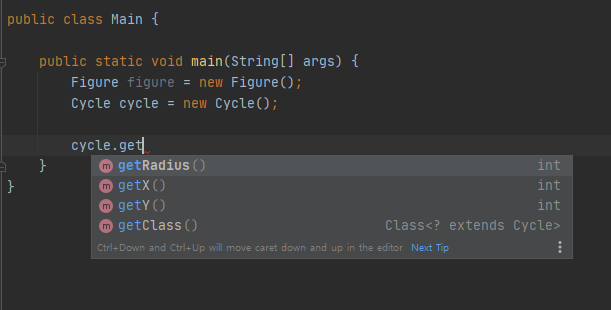 public class Main { public static void main(String[] args) { Figure figure = new Cycle(1, 1, 3); // 부모 타입 래퍼런스 변수 figure.print(); } }위 코드를 보면 부모 타입의 래퍼런스 변수인 것을 알 수 있다. 컴파일 시점에서 호출된 객체의 정보를 알 수 없기 때문에 어떤 메소드를 사용할지 예측할 수 없다.