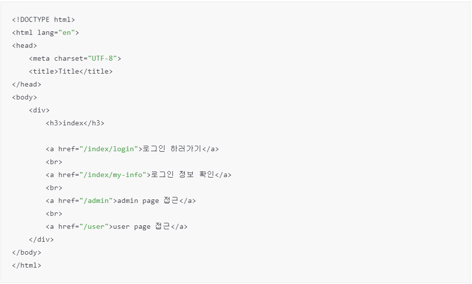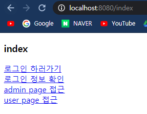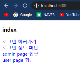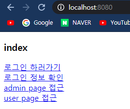 index page이다. a태그로 원하는 기능의 실행을 확인할 수 있다.