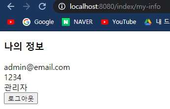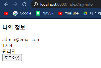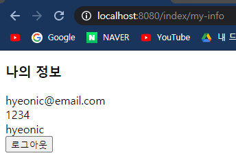 로그인이 성공하면 자신의 정보를 확인할 수 있는 my-info이다.