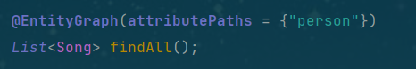 그 다음 모든 song을 조회한 후 각각의 person에 name 필드에 접근한다. song 엔티티에 person은 lazy loading 이기 때문에 getName을 통하여 사용되는 시점에 쿼리가 실행된다.