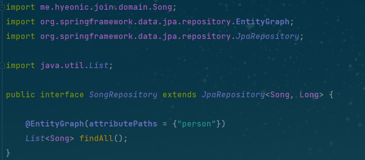 SongRepository에 findAll의 경우 @EntitiyGraph를 통하여 조회를 하기 때문에 left outer join을 사용할 것이다.