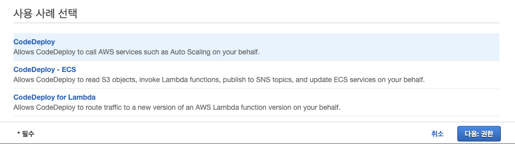 CodeDploy를 선택하고 다음으로 넘어간다.