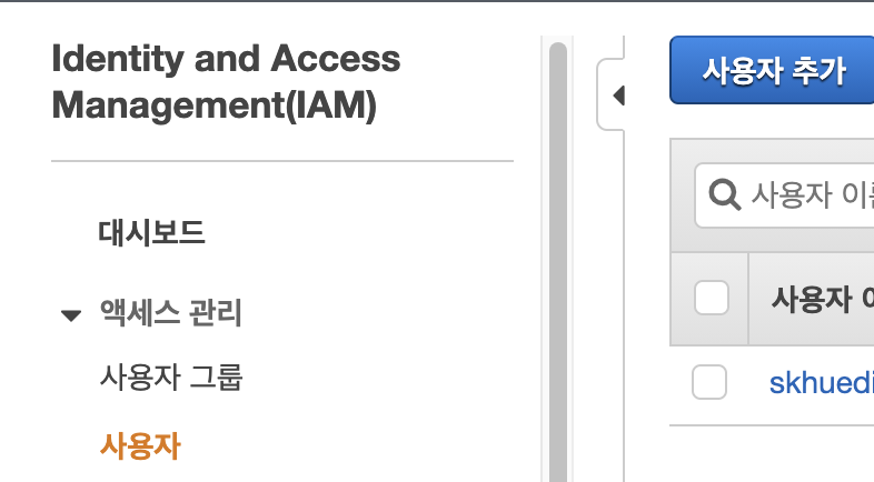 우선 Travis CI와 AWS S3을 연동해야 한다. 일반적으로 AWS 서비스는 Travis와 같은 외부 서비스가 접근할 수 없다. 접근 가능한 권한을 가진 key를 생성해서 사용해야 한다. AWS에서 이러한 인증 관련된 기능은 IAM(Identity and Access Management)에서 제공된다.