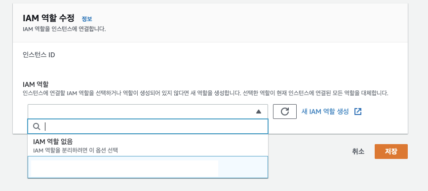 위에서 생성한 역할을 선택한다. 역할 수정 까지 완료되면 해당 인스턴스를 재부팅한다.