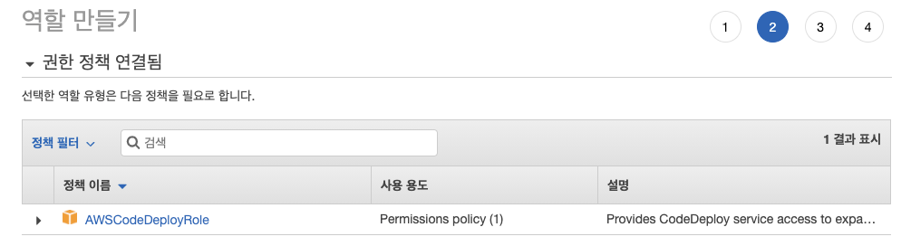 AWSCodeDeployRole을 클릭하여 다음으로 넘어간다.