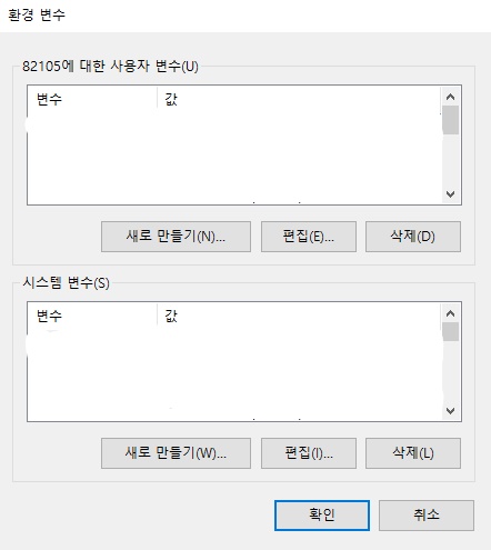 사용자 변수와 시스템 변수에 새로 만들기를 클릭한다.