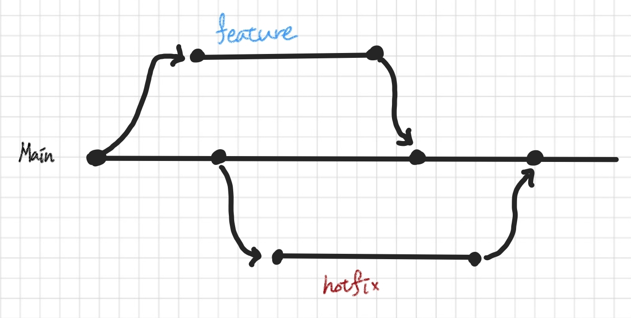 main브랜치를 기준으로 모든 브랜치가 뻗어 나간다. 이런한main브랜치는 항상 최신의 상태이며,stable한 상태로 배포되는 브랜치이다.새로운 작업을 시작하기 위해서는 브랜치의 이름을 자세하게 작성하여