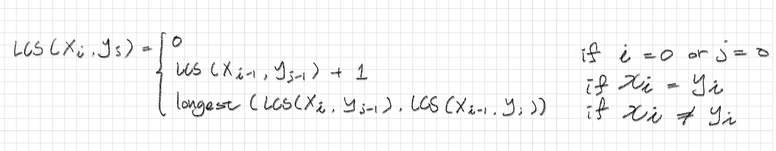 LCS의 길이를 구하는 공식은 생각보다 간단하다. 이 공식과 동적 프로그래밍을 사용하여 문제를 해결하였다.