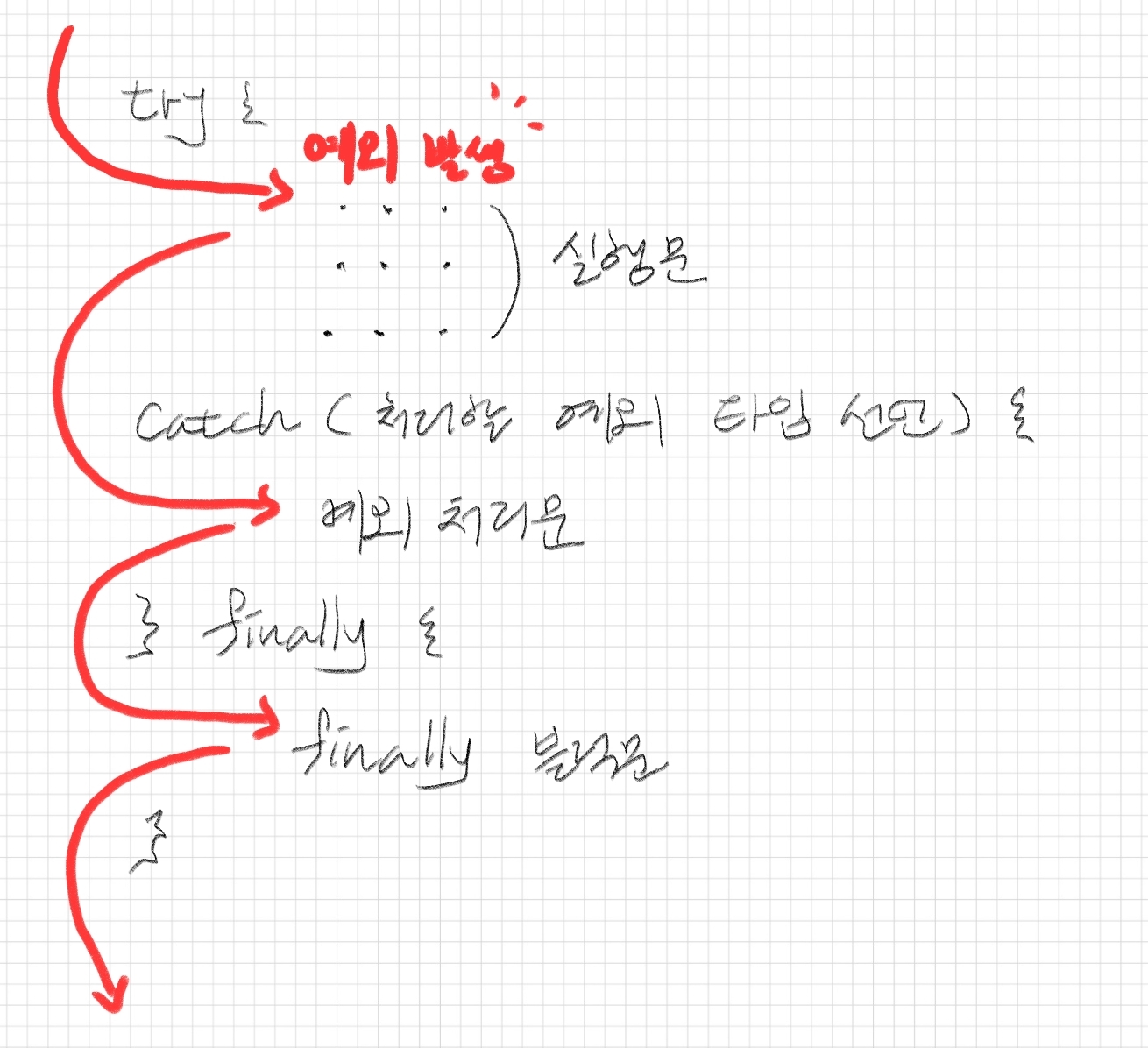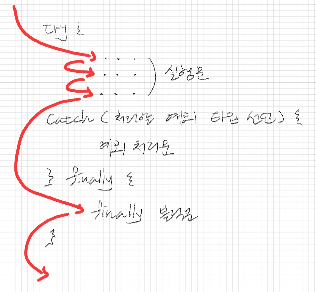 Java에서 실행 도중에 발생하는 예외 처리를 위해 try-catch-finally 문 사용이 가능하다.