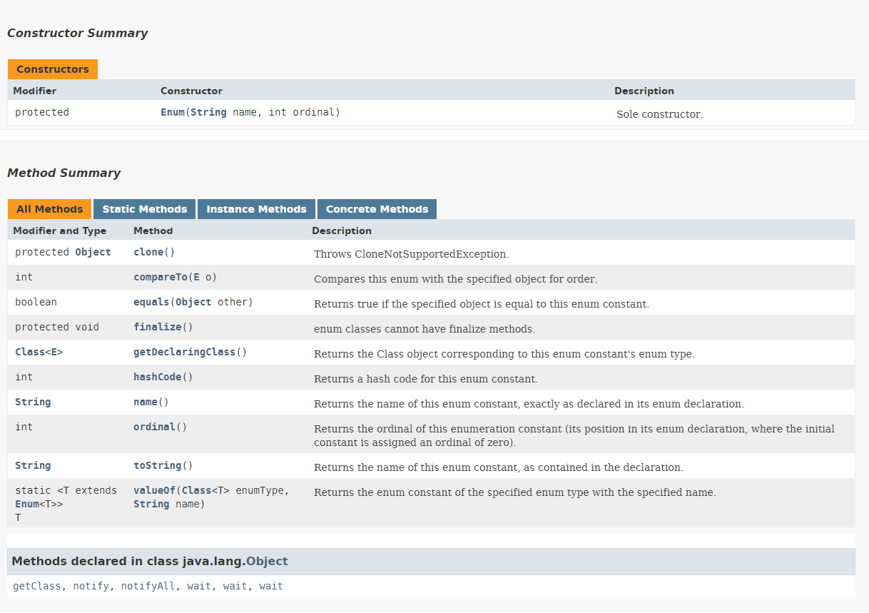 참고 : docs.oracle.com/en/java/javase/11/docs/api/java.base/java/lang/Enum.html