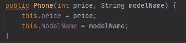 public enum Phone { GALAXY_S21(999_900, "SM-G991NZIEKOO"), GALAXY_S21_PLUS(1_119_900, "SM-G996NZVEKOO"), GALAXY_S21_ULTRA(1_452_000, "SM-G998NZKEKOO"), GALAXY_Z_FLIP(1_650_000, "SM-F707NZNAKOO"), GALAXY_Z_FOLD2(2_398_000, "SM-F916NZKAKOO"); private final int price; private final String modelName; Phone(int price, String modelName) { this.price = price; this.modelName = modelName; } public int getPrice() { return this.price; } public String getModelName() { return this.modelName; } }스마트폰의 가격과 모델명이 들어있는 enum 타입을 작성하였다. 서로 관련 있는 상수 값들을 모아 enum으로 구현하는 경우 유용하게 사용할 수 있다. 또한 클래스와 같이 작성이 가능하다. 생성자가 존재하지만 Default 생성자는 private로 되어 있다. public으로 변경하면 컴파일 에러가 발생한다.